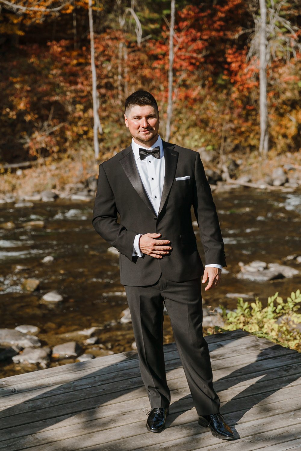 While guests enjoyed the cocktail hour, we walked back to the secluded area by the river for family portraits. After Kristine and Jaime explored the property for portraits with me. The soft late-afternoon October light filtered through the forest paths.