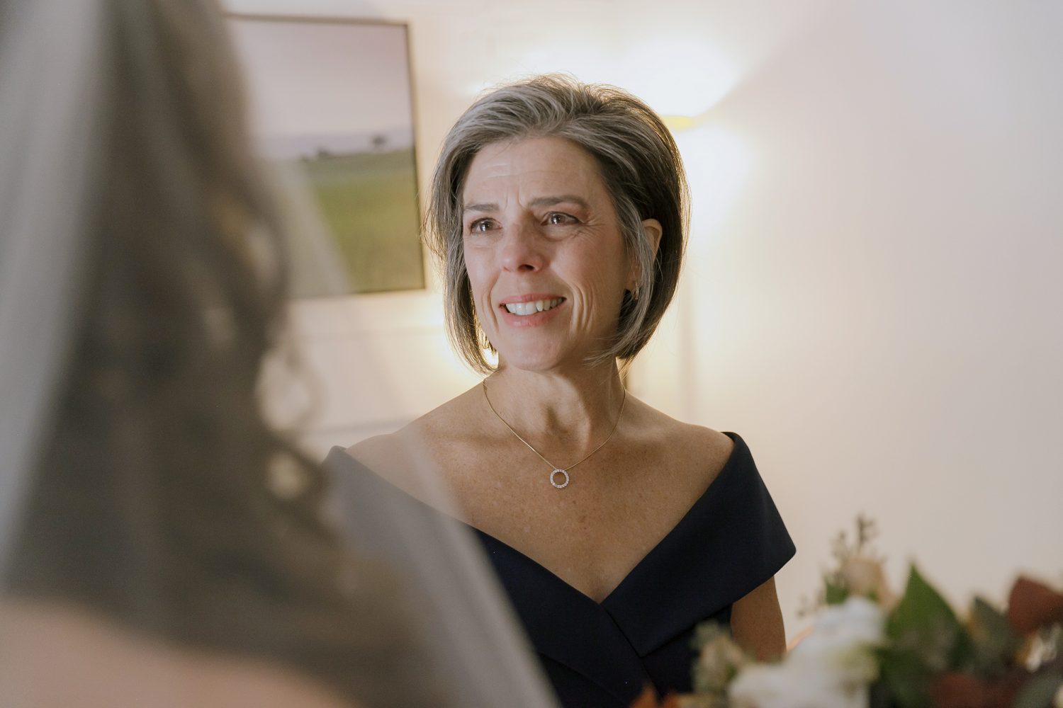 Although Jamie and Kristine chose not to see each other before the ceremony, they wanted a quiet moment together. They stood on opposite sides of the door in Kristine’s room and held hands. That simple gesture helped steady their nerves and brought a sense of calm before the day unfolded.
